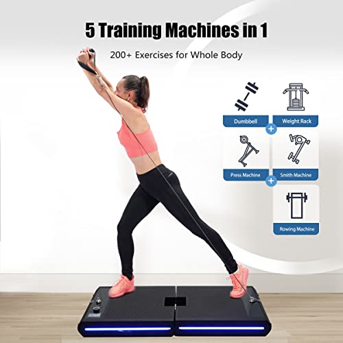- 💪【Move Gym To Home】5 Training Machines in 1 Smart Fitness Trainer ! Dumbbell + Weight Rack + Press Machine + Smith Machine + Rowing Machine. 200+ Exercises for Whole Body!One Smart Fitness Trainer = One Gym!
